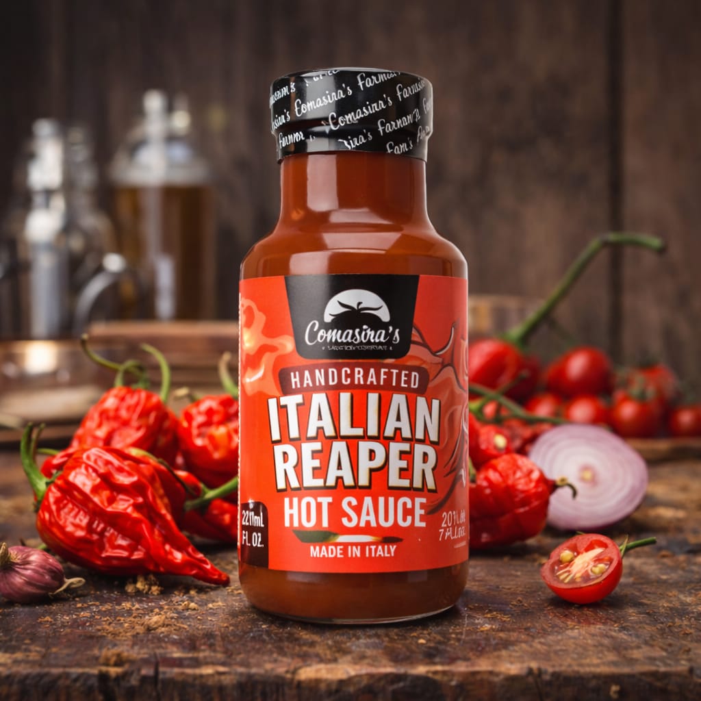 Comasira’s Italian Reaper è una salsa piccante artigianale prodotta in Italia, realizzata con ingredienti selezionati e peperoncini freschi Carolina Reaper per offrire un’esperienza intensa, autentica e senza compromessi.